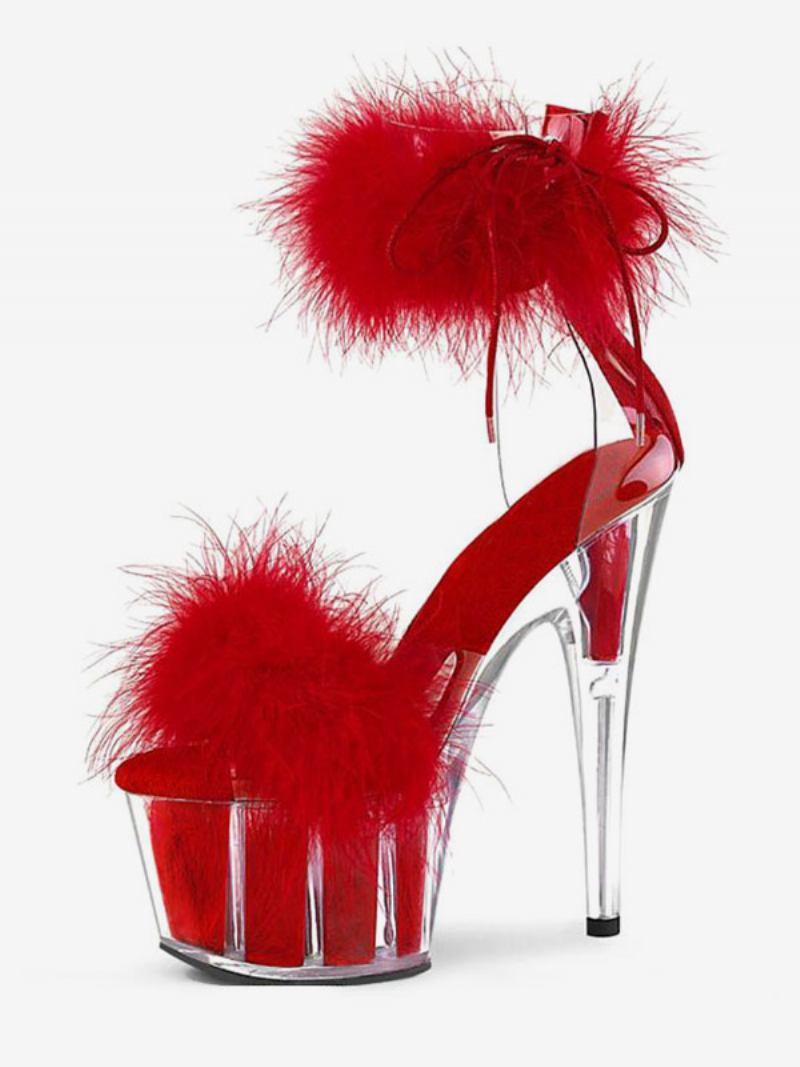 Sapatos Dança Poste Sandálias Salto Sexy Para Mulheres Preto Couro Pu Peep Toe Stiletto Com Tira No Tornozelo
