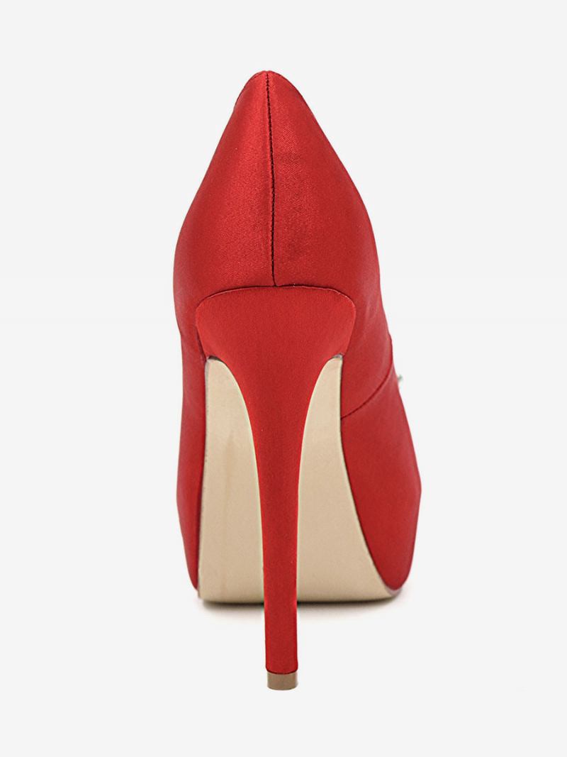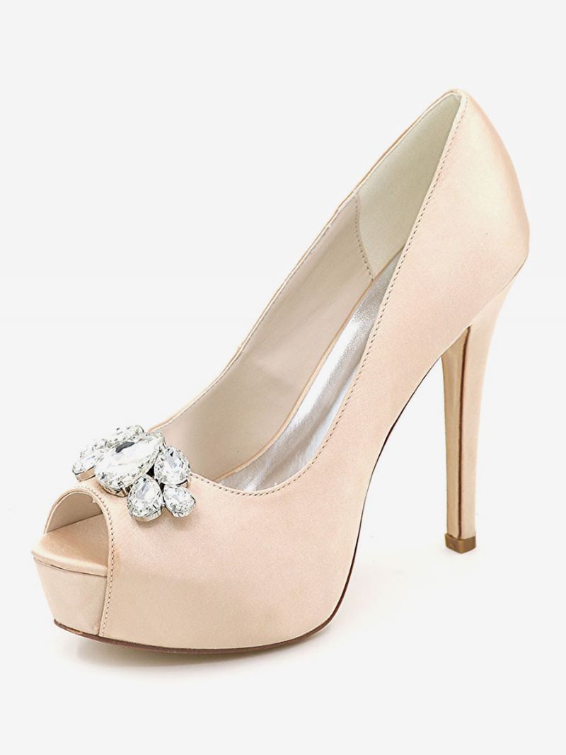 Sapatos Femininos Casamento Com Plataforma Peep Toe Salto Agulha Em Cetim