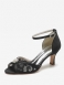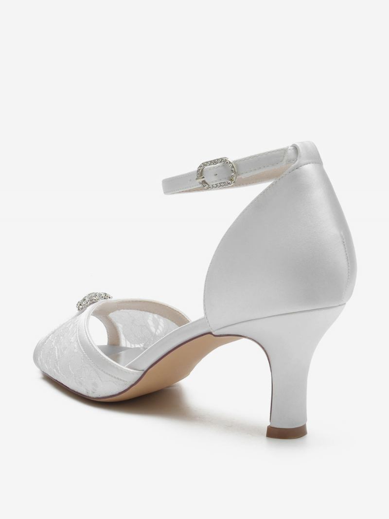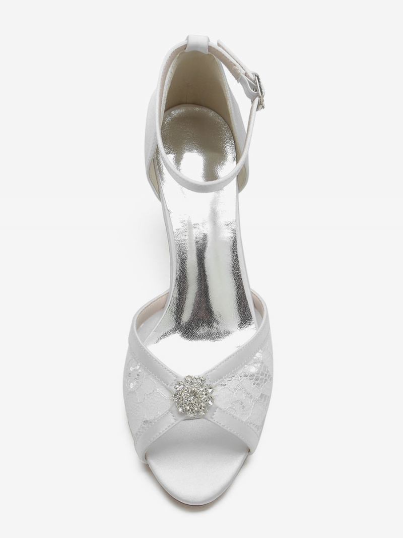 Sapatos Femininos Casamento Com Renda Peep Toe Strass Salto Grosso Noiva