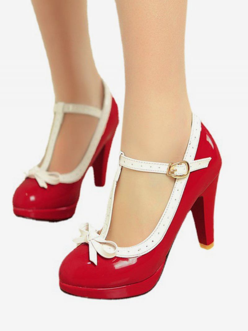 Sapatos Femininos Pretos Salto Grosso Com Alça Em T E Arco Vintage Dos Anos 1950