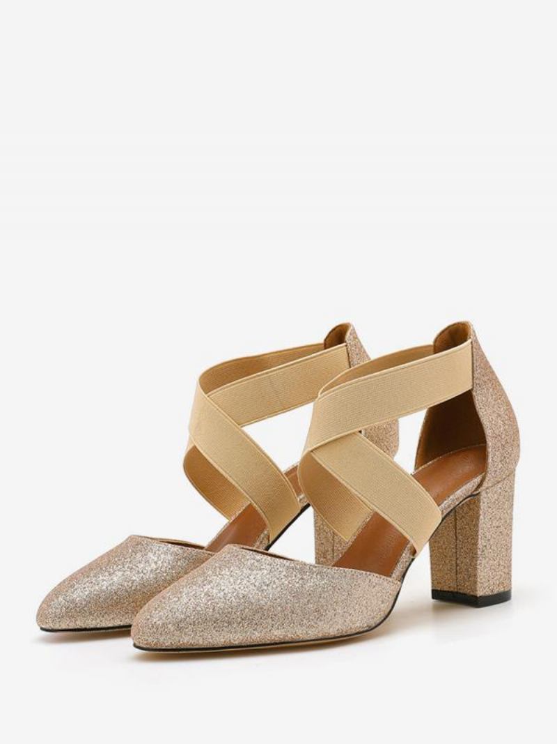 Sapatos Femininos Salto Alto Para Festa Bico Fechado Prateado Baile