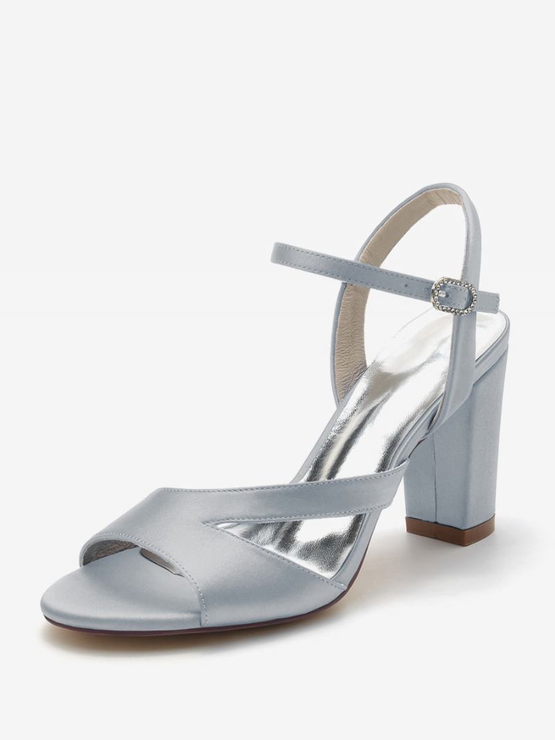 Sapatos Noiva Femininos Cetim Azul Profundo Peep Toe Com Salto Grosso