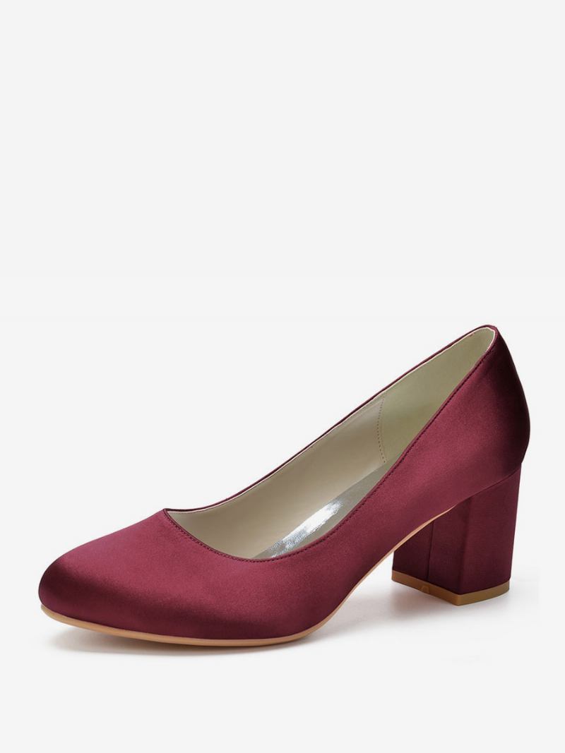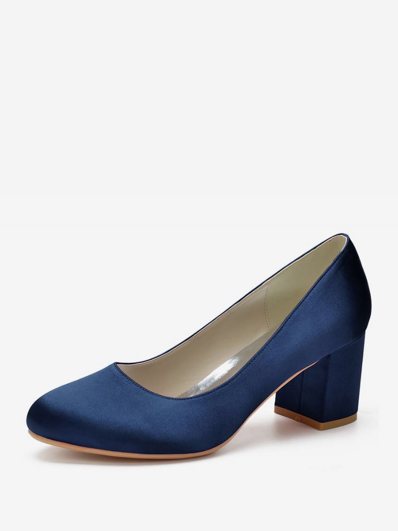 Sapatos Noiva Femininos Com Salto Bloco E Bico Redondo
