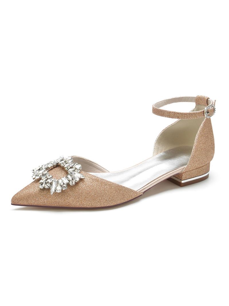 Sapatos Noiva Femininos Com Strass E Tira No Tornozelo Plana Em Cetim