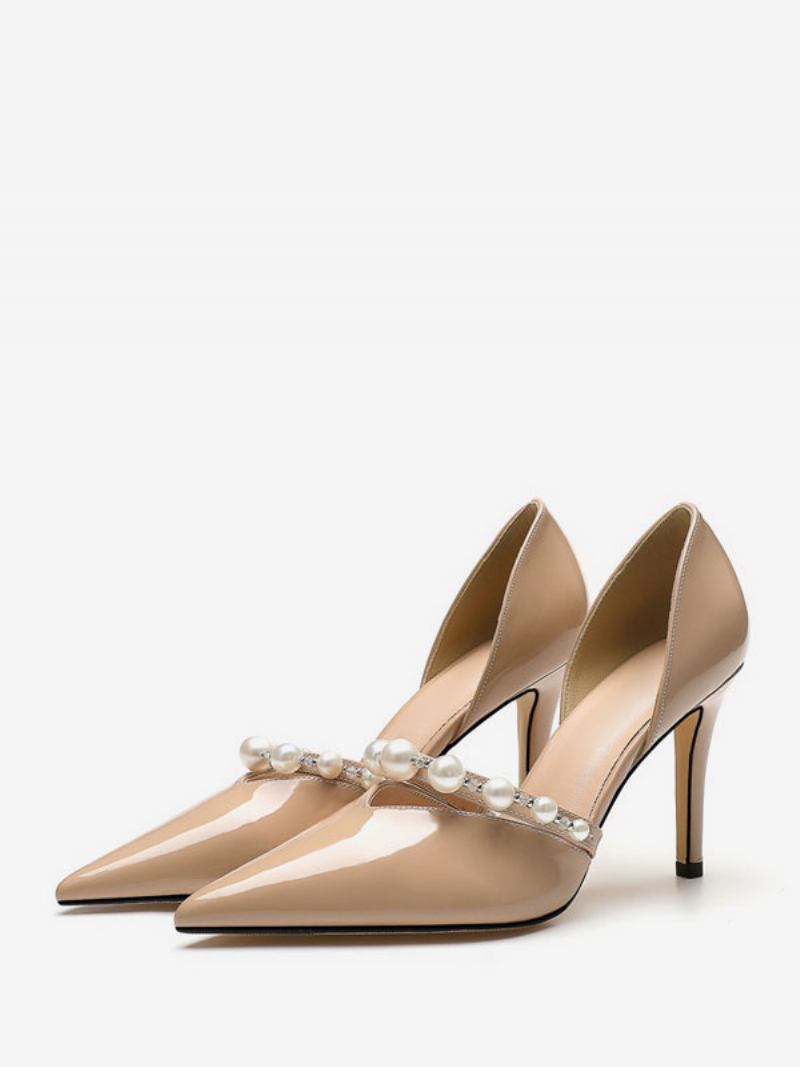 Sapatos Noiva Femininos Salto Alto Nude Pérolas Pontiagudas Com Agulha