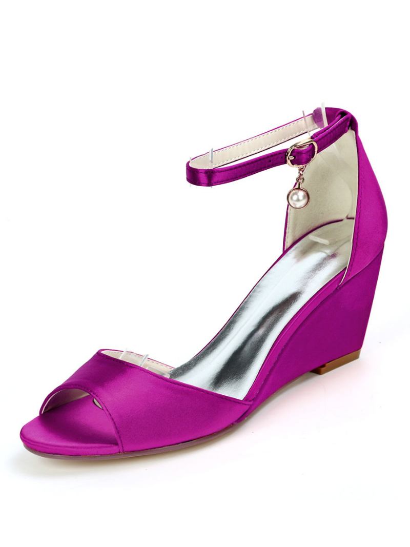 Sapatos Noiva Femininos Sandálias Cunha Com Tira No Tornozelo Em Cetim