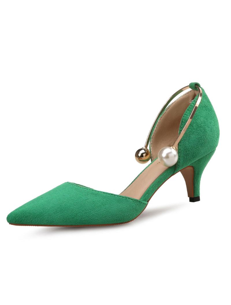 Sapatos D'orsay Salto Gatinho Turquesa Com Pérolas Para Mulheres