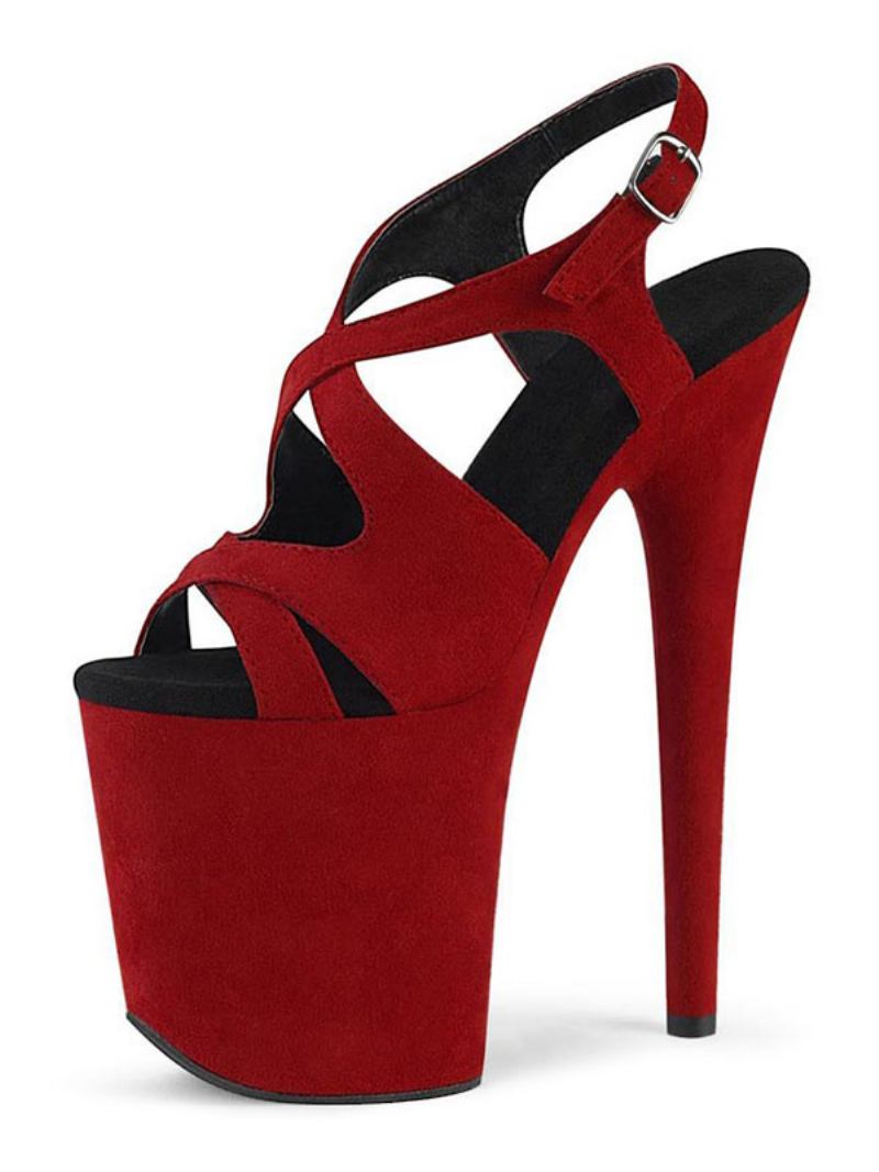 Sapatos Pole Dance Femininos Com Plataforma Sexy Saltos Exóticos Em Camurça Vermelha