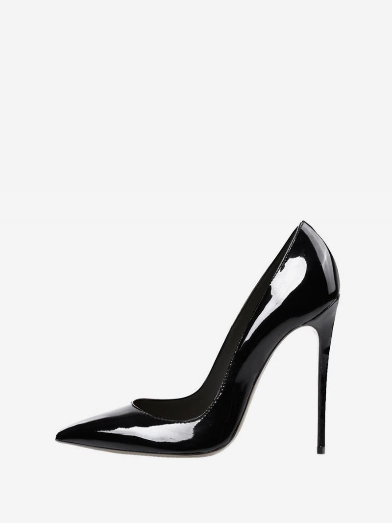 Sapatos Pretos Sexy Salto Alto Bico Fino Com Agulha Para Mulheres