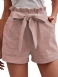 Shorts Femininos Linho Com Cintura Elástica E Bolsos Fofos Verão