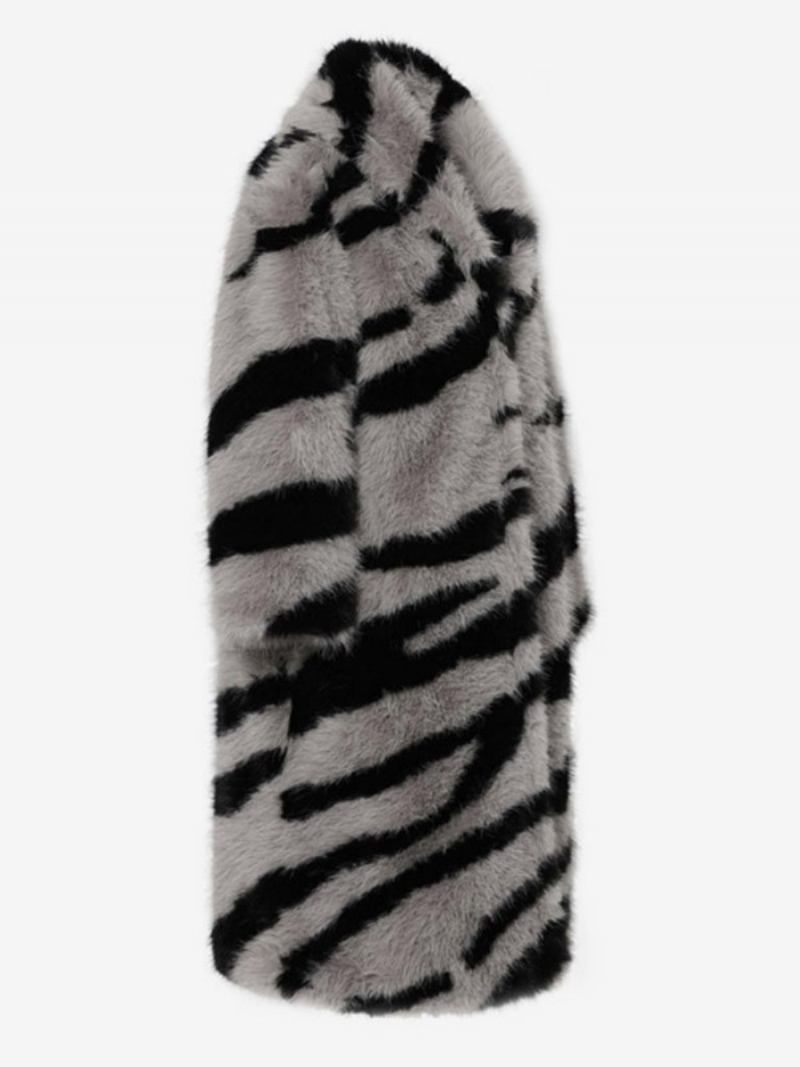 Sobretudo Pele Sintética Com Estampa Zebra Gola Aberta Agasalhos Femininos Grandes
