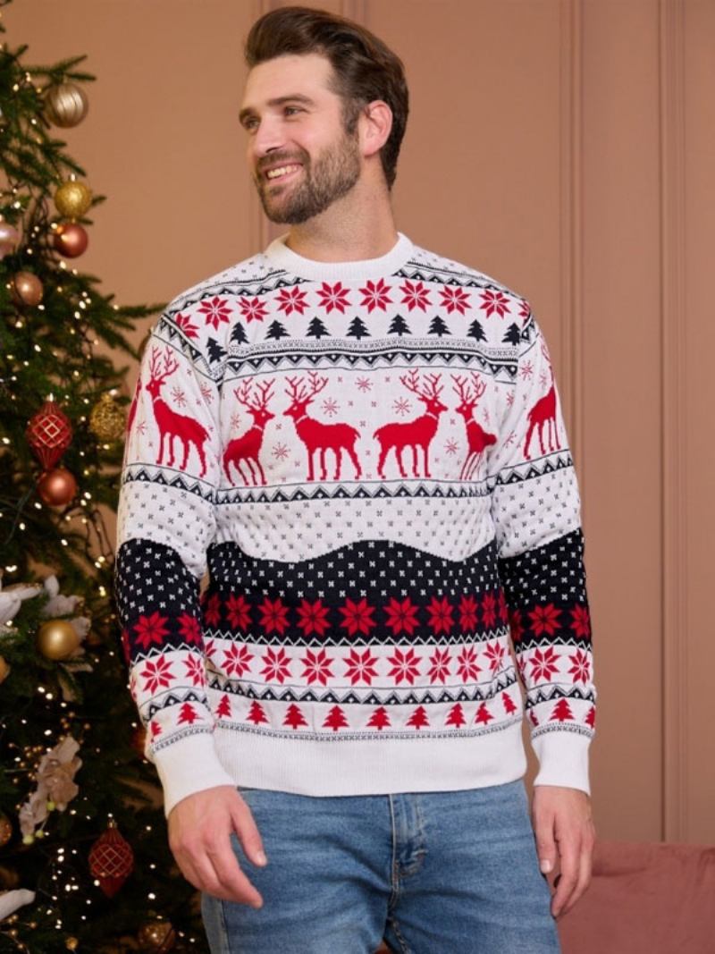 Suéter Feminino Com Estampa Natal Gola Redonda Mangas Compridas Pulôveres Para Casal