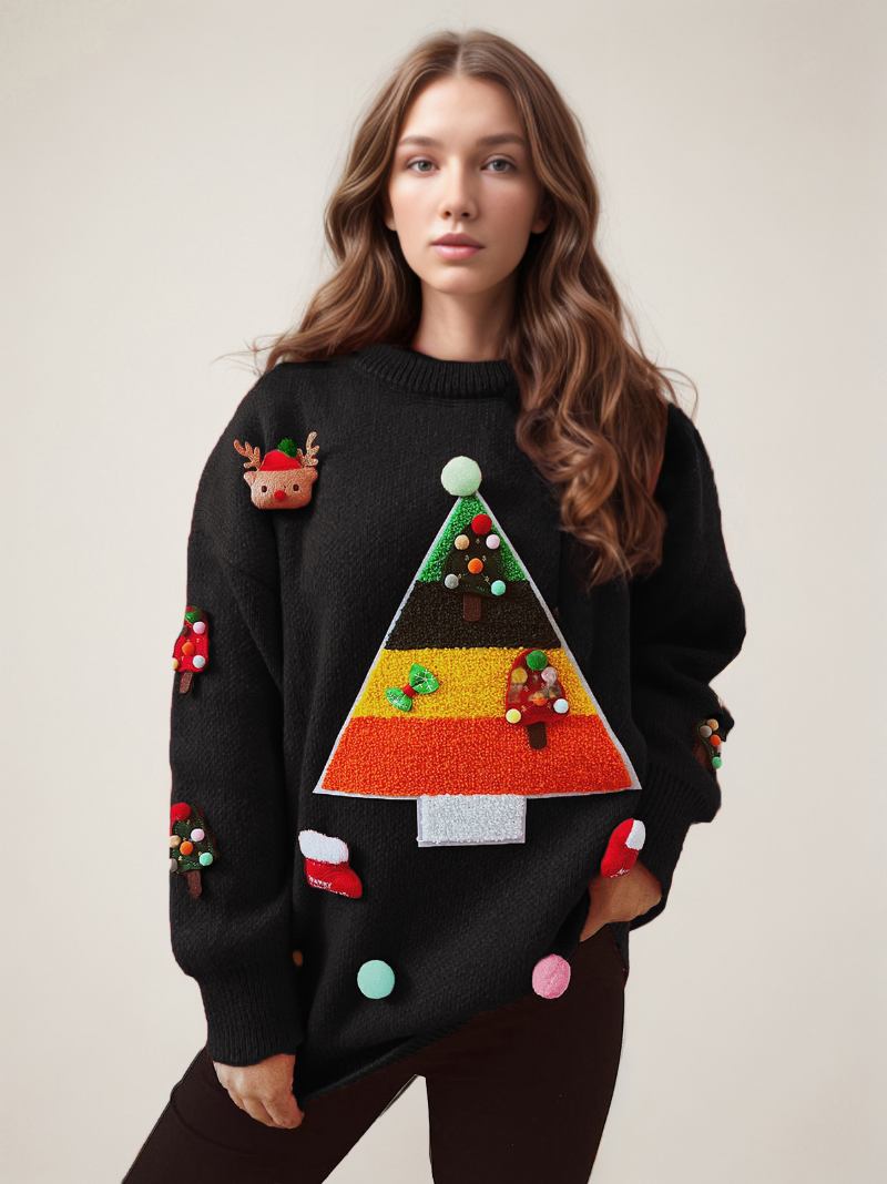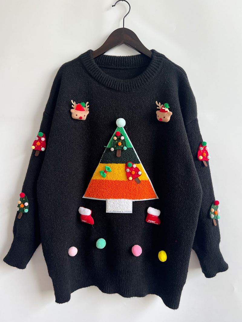 Suéter Feminino Com Pompons Gola Redonda Mangas Compridas Pulôver Punhos Canelados