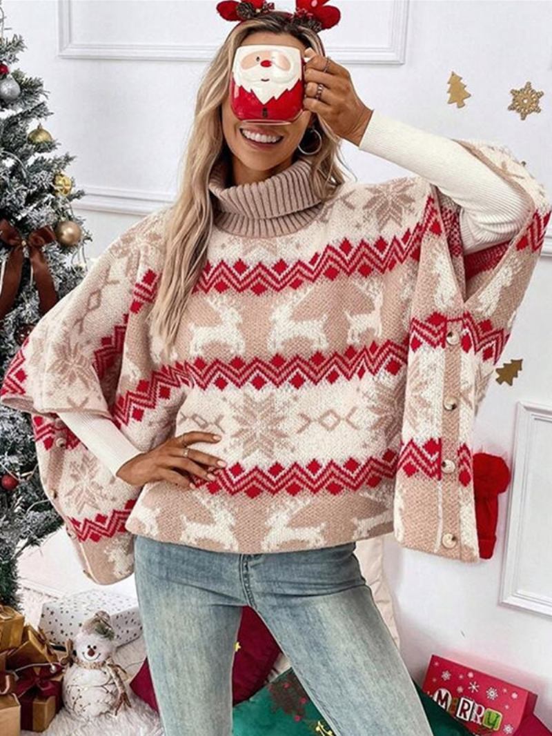Suéter Túnica Vermelha Solta Com Gola Polo E Mangas Morcego Pulôver Feminino