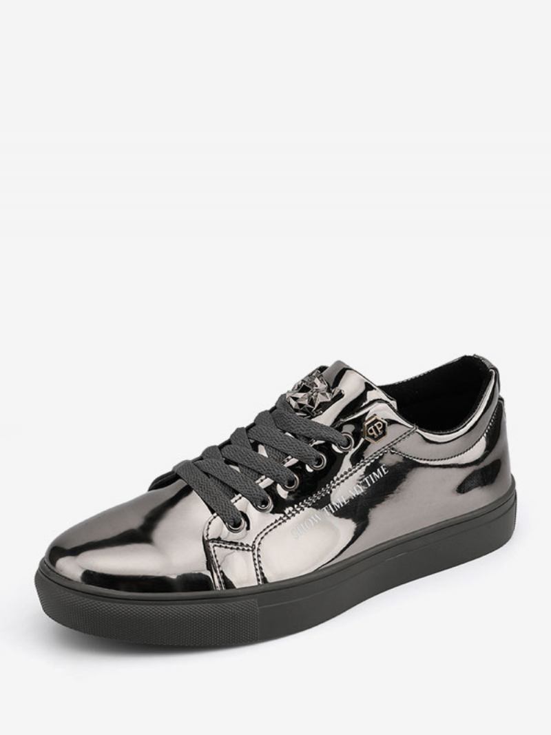 Tênis Masculino Couro Envernizado Bico Redondo Sapatos Causais Azuis