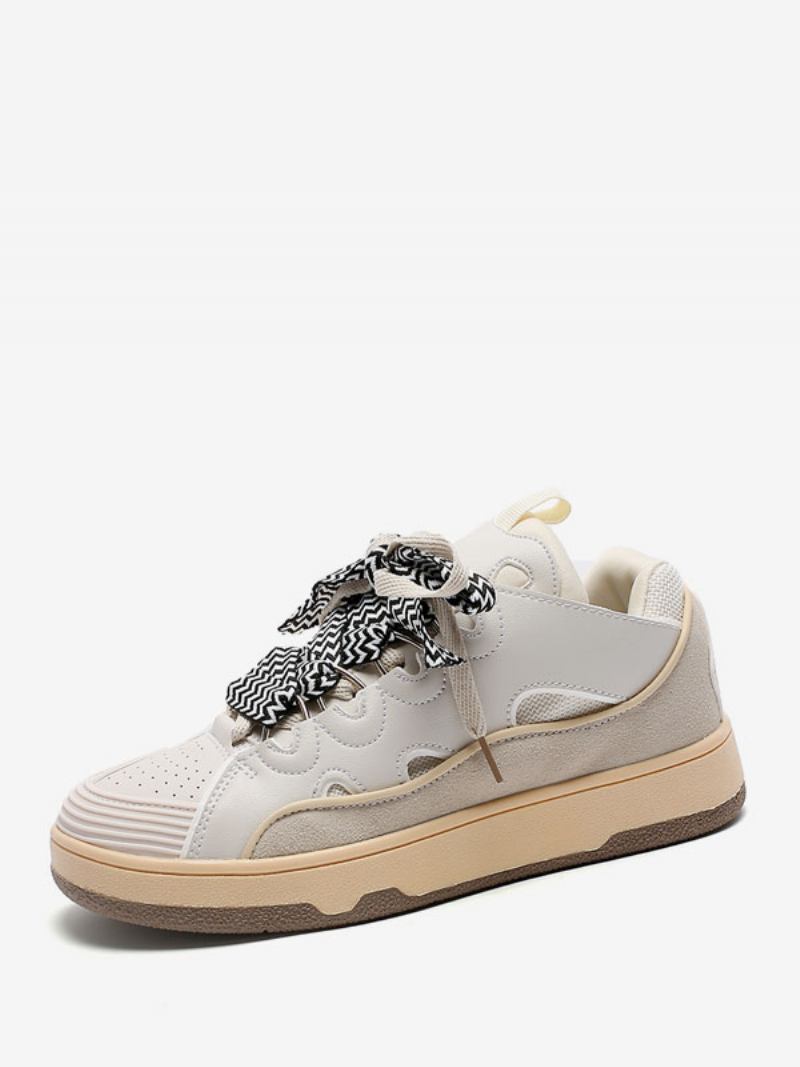 Tênis Para Homens Fashion Color Block Couro Pu Bico Redondo