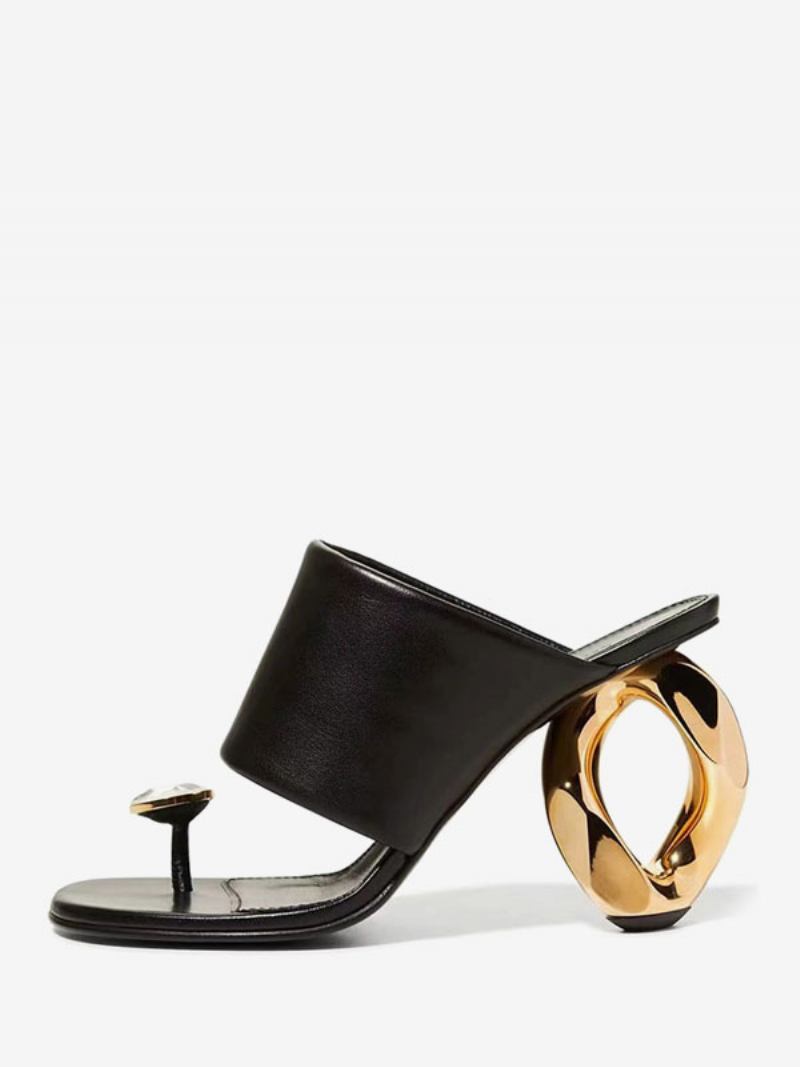 Toe Loop Feminino Salto Projetado Mules Pretos