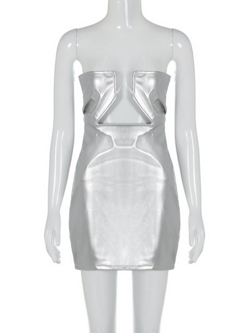 Vestido Bodycon Aniversário Para Mulheres Sem Alças Com Recorte Em Couro Pu Sexy Clube