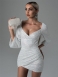 Vestido Bodycon Feminino Com Lantejoulas E Decote Desenhado Mangas Compridas Glitter Minivestidos