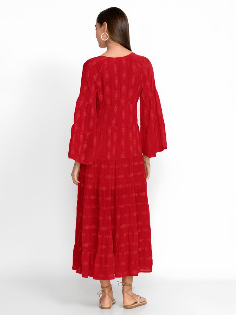 Vestido Boho Feminino Com Botões Decote Em V Mangas 3/4. Praia