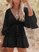 Vestido Boho Renda Com Decote Em V Batwing Branco Flare Minivestido Para Mulheres