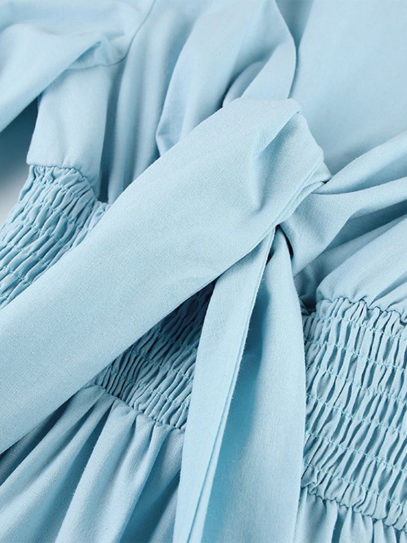 Vestido Feminino Azul Bebê Com Smocked Mangas Bufantes Vestidos Maxi Para Dia Praia