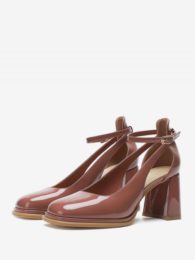 Vestido Feminino Bombas Lindo Dedo Do Pé Quadrado Couro Envernizado Altura Crescente