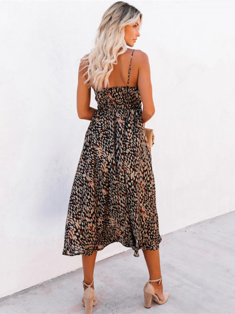 Vestido Feminino Estampado Alças Finas Recorte Casual Vestidos Verão
