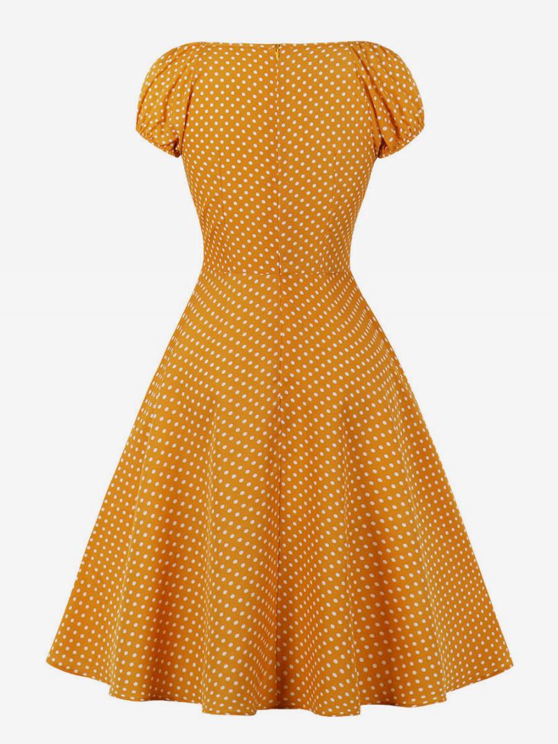 Vestido Feminino Estilo Audrey Hepburn Dos Anos 1950. Retrô Decote Em V Manga Curta Bolinhas Midi Swing