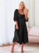 Vestido Feminino Evasê Com Decote Em Coração Mangas Bufantes Recorte Casual Vestidos Verão