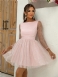 Vestido Feminino Lantejoulas Rosa Blush Ilusão Mangas Gola Canoa Vestidos Curtos Doces