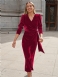 Vestido Feminino Midi Veludo Damasco Mangas Compridas Com Renda Em Decote V