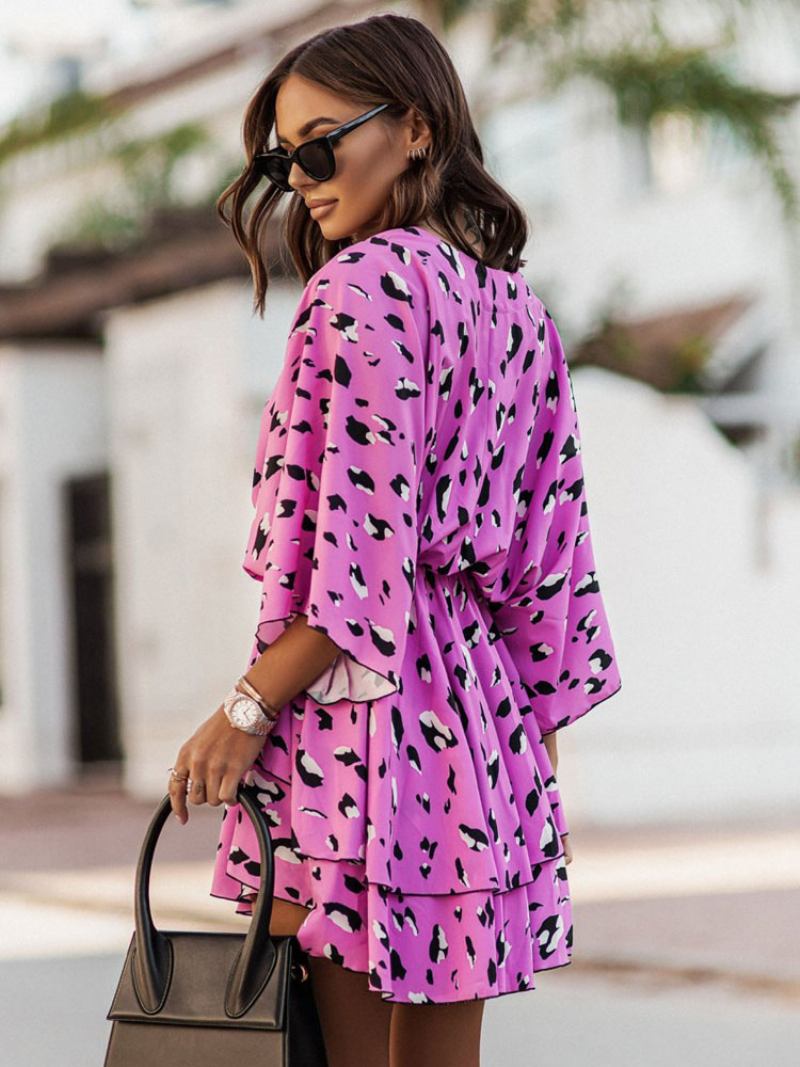 Vestido Feminino Verão Praia Rosa Com Decote Em V