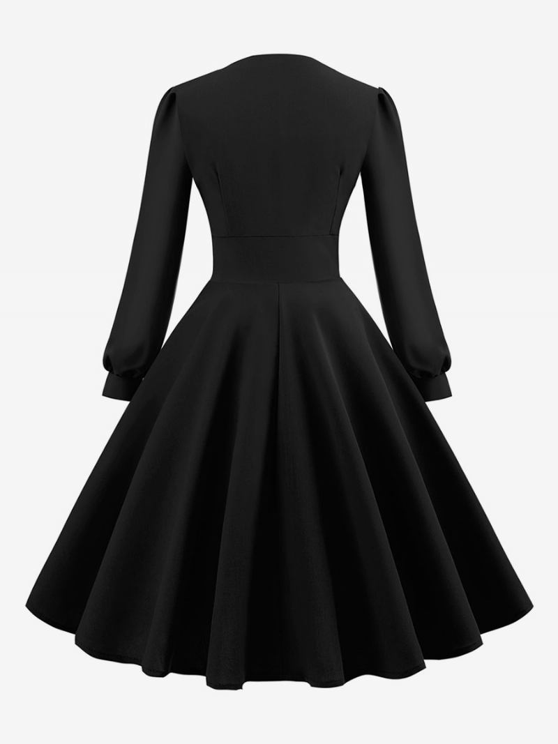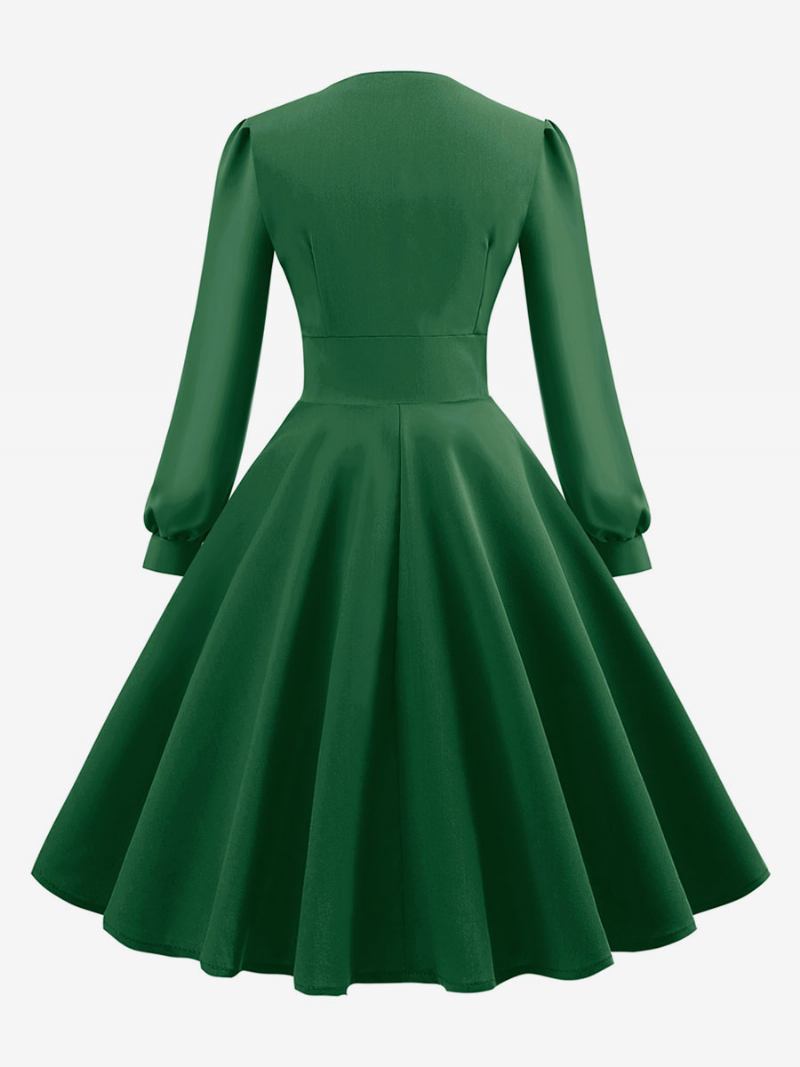 Vestido Feminino Vintage Dos Anos 1950. Estilo Audrey Hepburn Decote Em V Mangas Compridas Camadas Médio Swing