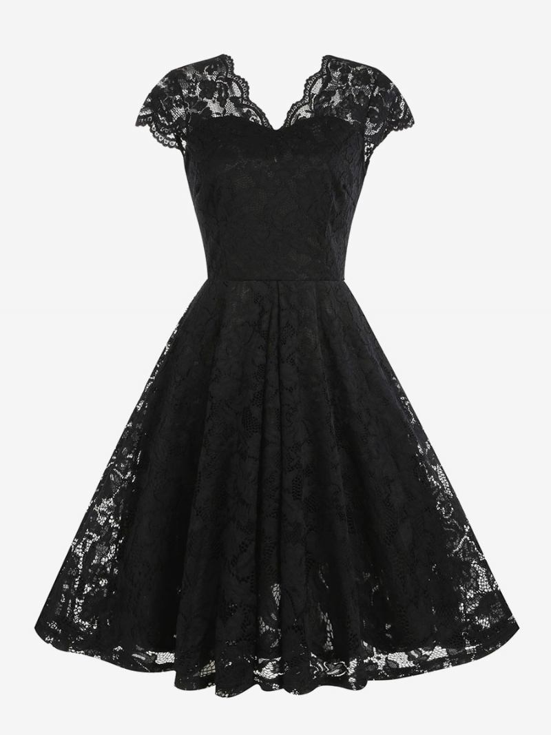 Vestido Feminino Vintage Dos Anos 1950. Estilo Audrey Hepburn Decote Em V Renda Sem Mangas Médio Swing