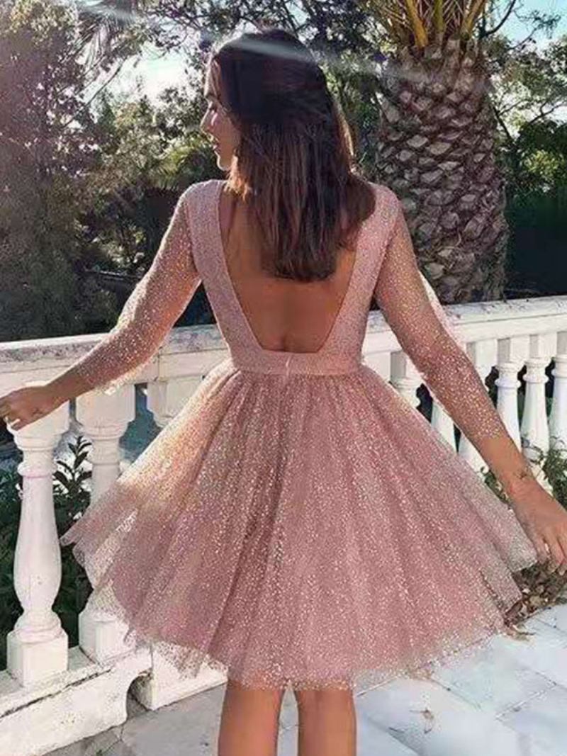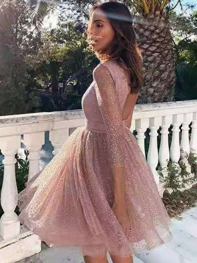 Vestido Festa Feminino Com Lantejoulas E Mangas Ilusão Decote Canoa Linha A Vestidos Curtos Para Aniversário