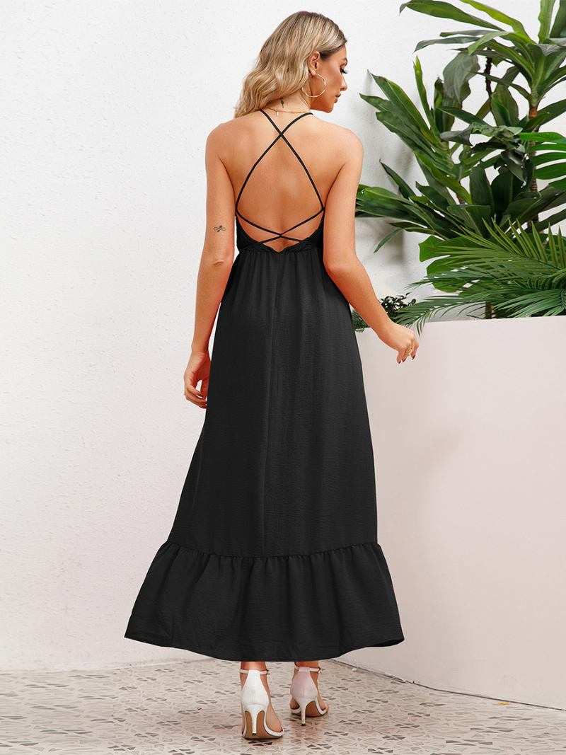 Vestido Festa Feminino Halter Aberto Nas Costas Plissado Na Frente Com Cinto Em Camadas Vestidos Midi