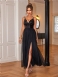 Vestido Festa Feminino Lantejoulas Corpete Com Fenda Alta Alças Finas Vestidos Maxi Baile
