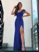 Vestido Festa Lantejoulas Para Aniversário Feminino Azul Com Decote Em V Manga Curta Longo Baile Fenda Alta