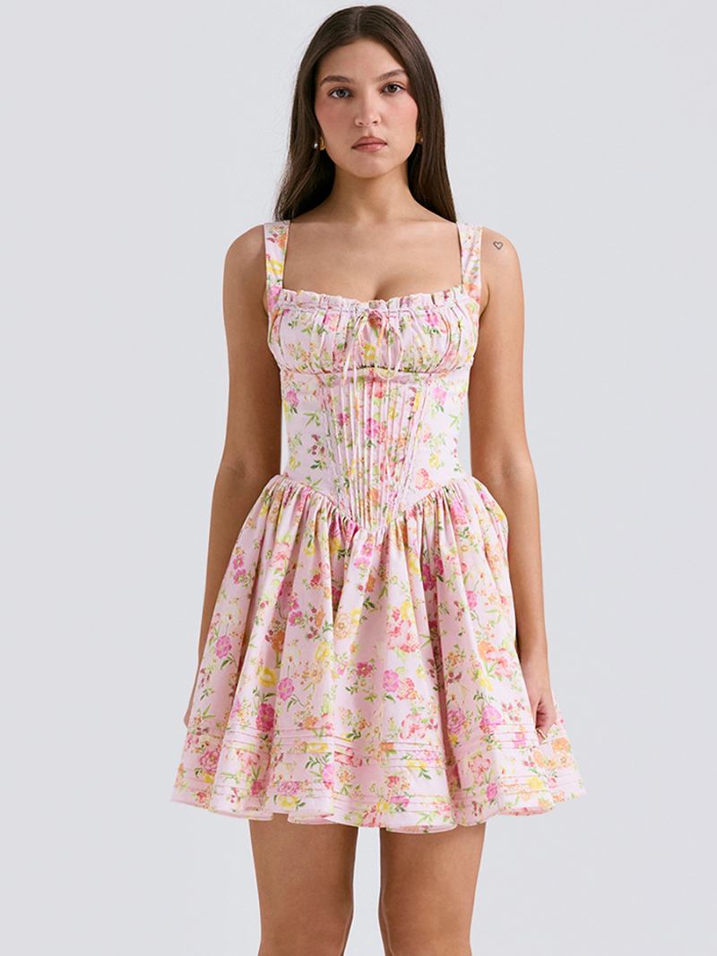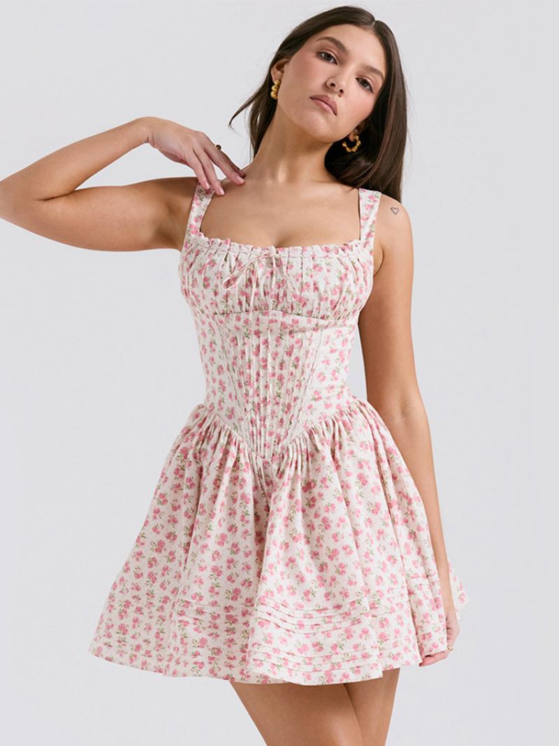 Vestido Floral Feminino Mini Vestidos Estampa Rendas Até Alças Pescoço Sem Costura Aberta Elegante Outono Curto