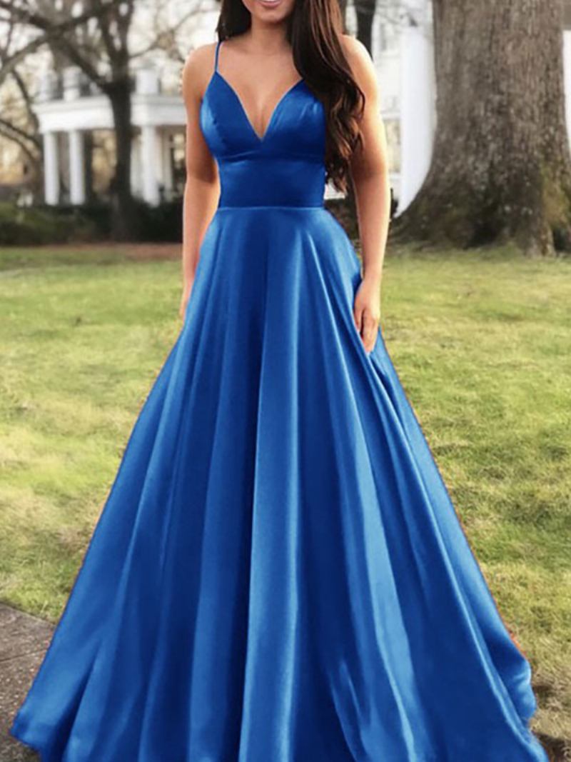Vestido Maxi Elegante Feminino Com Alças Finas Decote Em V Cintura Império Vestidos Baile