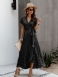 Vestido Maxi Feminino Com Decote Em V Manga Curta Longo Estampado