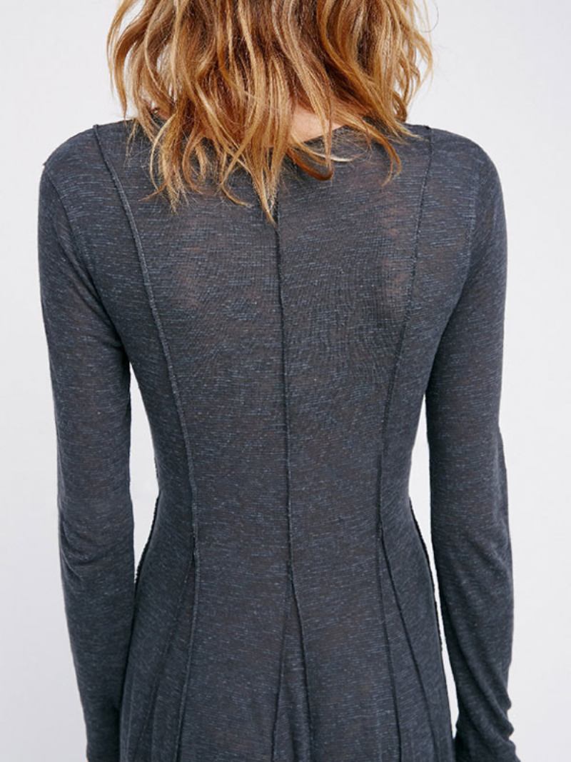 Vestido Maxi Feminino Com Decote Em V Mangas Compridas Algodão Casual Até O Chão