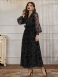 Vestido Maxi Feminino Com Decote Em V Mangas Compridas Casual Estampa Floral Longo Renda Transparente