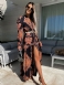Vestido Maxi Feminino Com Decote Em V Mangas Compridas Sexy Até O Chão