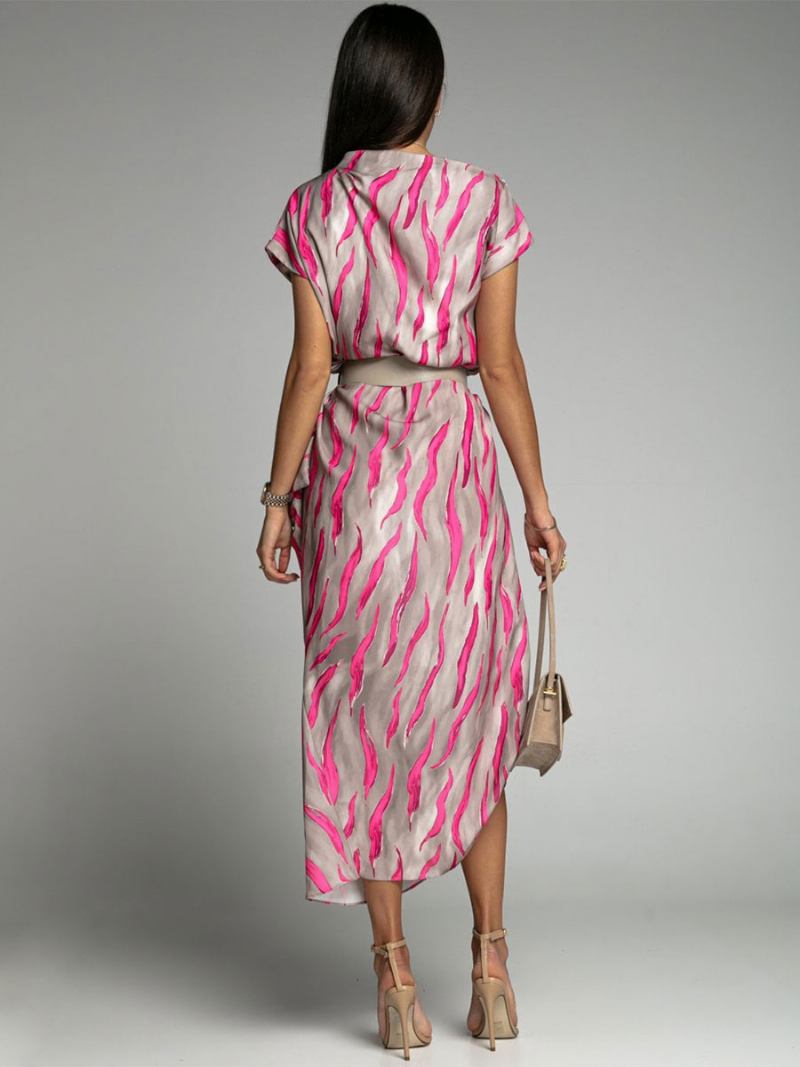 Vestido Maxi Feminino Com Gola Bateau Manga Curta Listrada Até O Chão