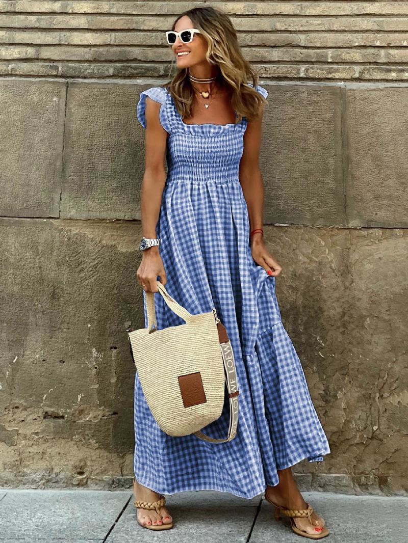 Vestido Maxi Feminino Sem Mangas Casual Longo Xadrez