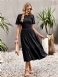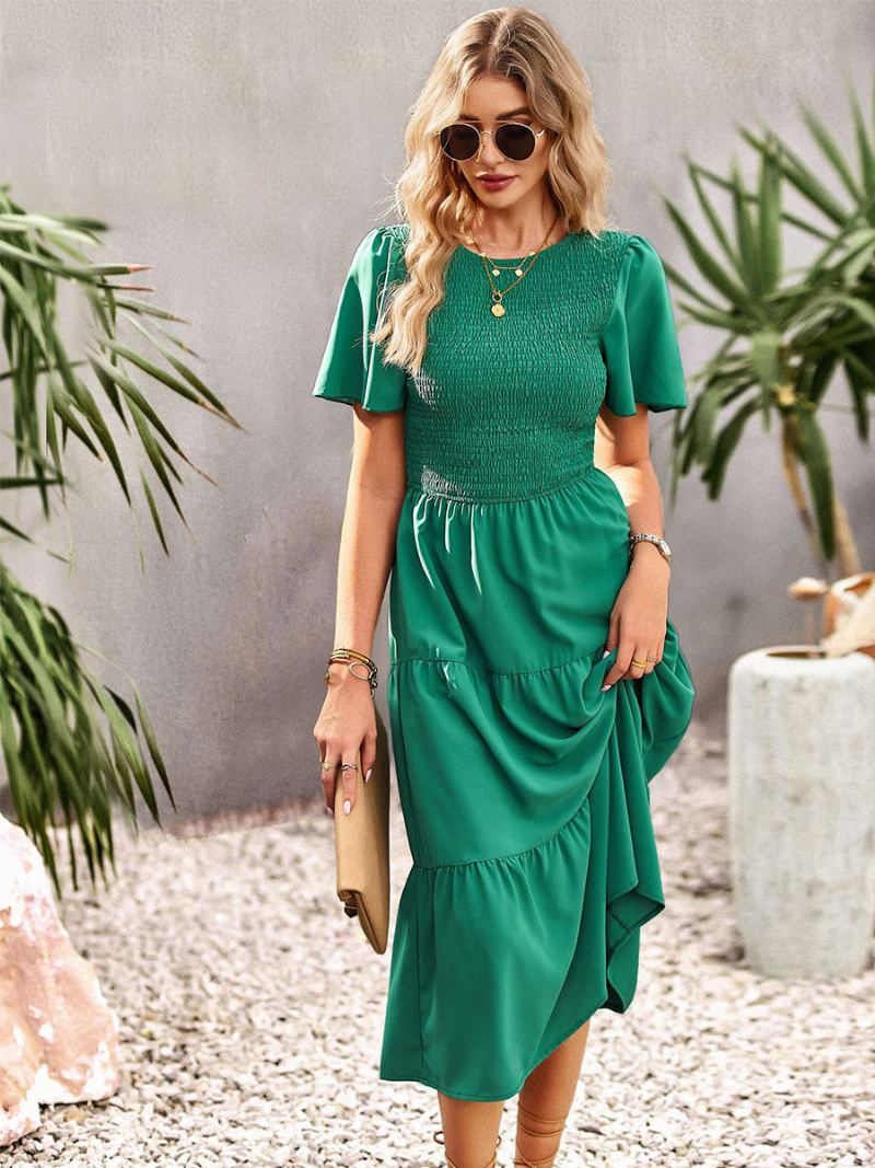 Vestido Midi Feminino Casual Com Gola Joia E Mangas Curtas