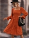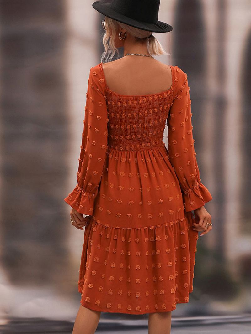 Vestido Midi Feminino Chiffon Casual Com Gola Quadrada E Mangas Compridas