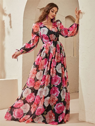 Vestido Midi Feminino Com Faixa E Gola Joia Mangas 3/4